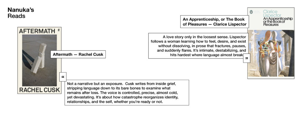 The year unfolded between departures and arrivals; I spent most of it in transit, avoiding stillness and calling it curiosity. Unsurprisingly, I fell for books that refused to play along. No reinvention arcs, just aftermaths, fractures, and emotions unraveling slowly and on purpose. Low plot, high emotional damage: books that made sense of a life that wouldn’t slow down.