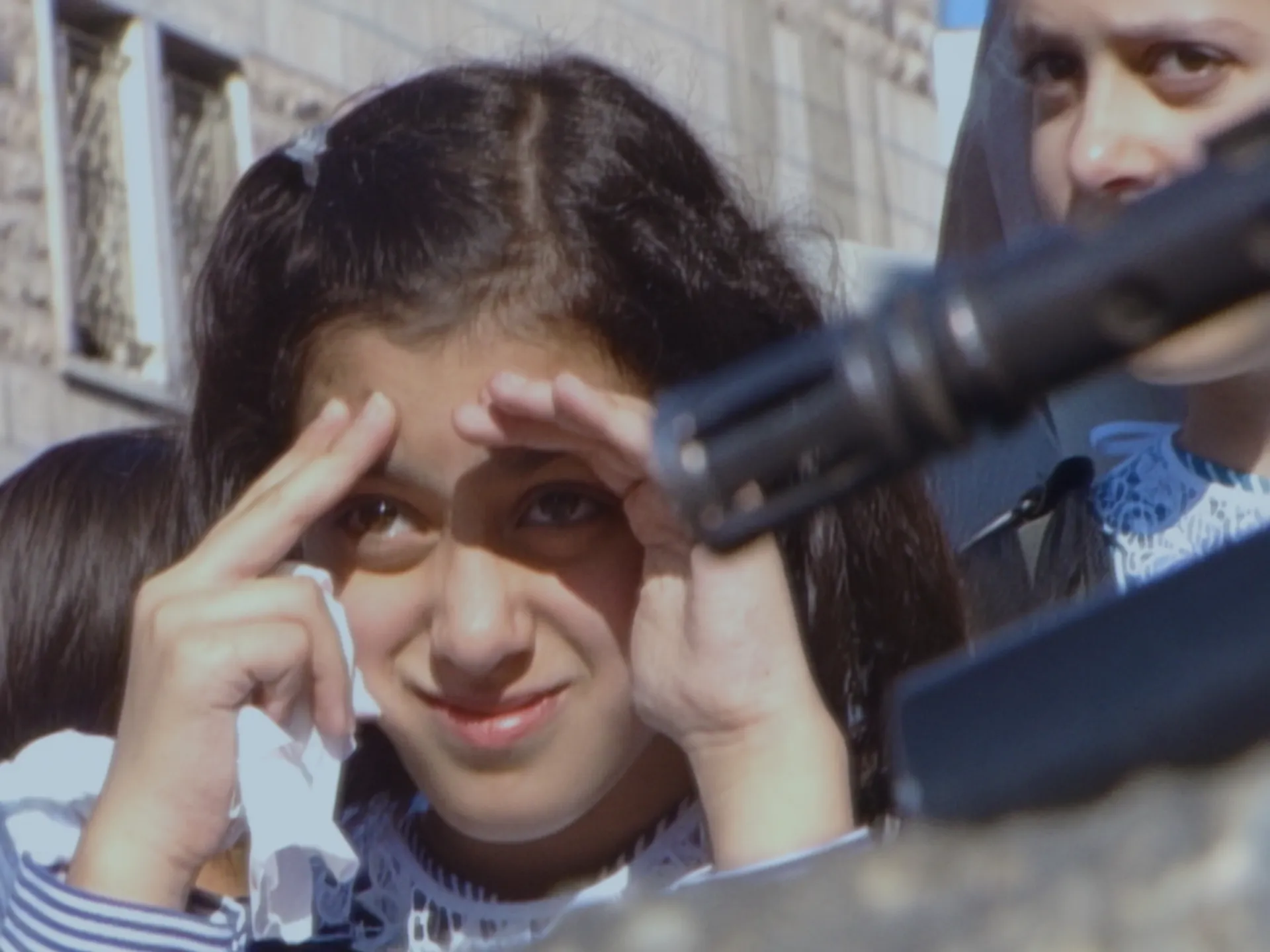 A poignant short film about Palestine, memories, and cultural heritage. The director, Shayma’ Awawdeh, was only six when the Second Intifada broke out. She uses the medium of documentary filmmaking to construct Palestine’s story through visual storytelling. Simultaneously, she uses voice-over, directed at her mom, to explore her own memories from childhood. We see glimpses of the brutal reality of living under occupation – IDF soldiers violently interacting with the elderly, scaring the children, explosions, tanks, and overall energy running through the veins of the city.
