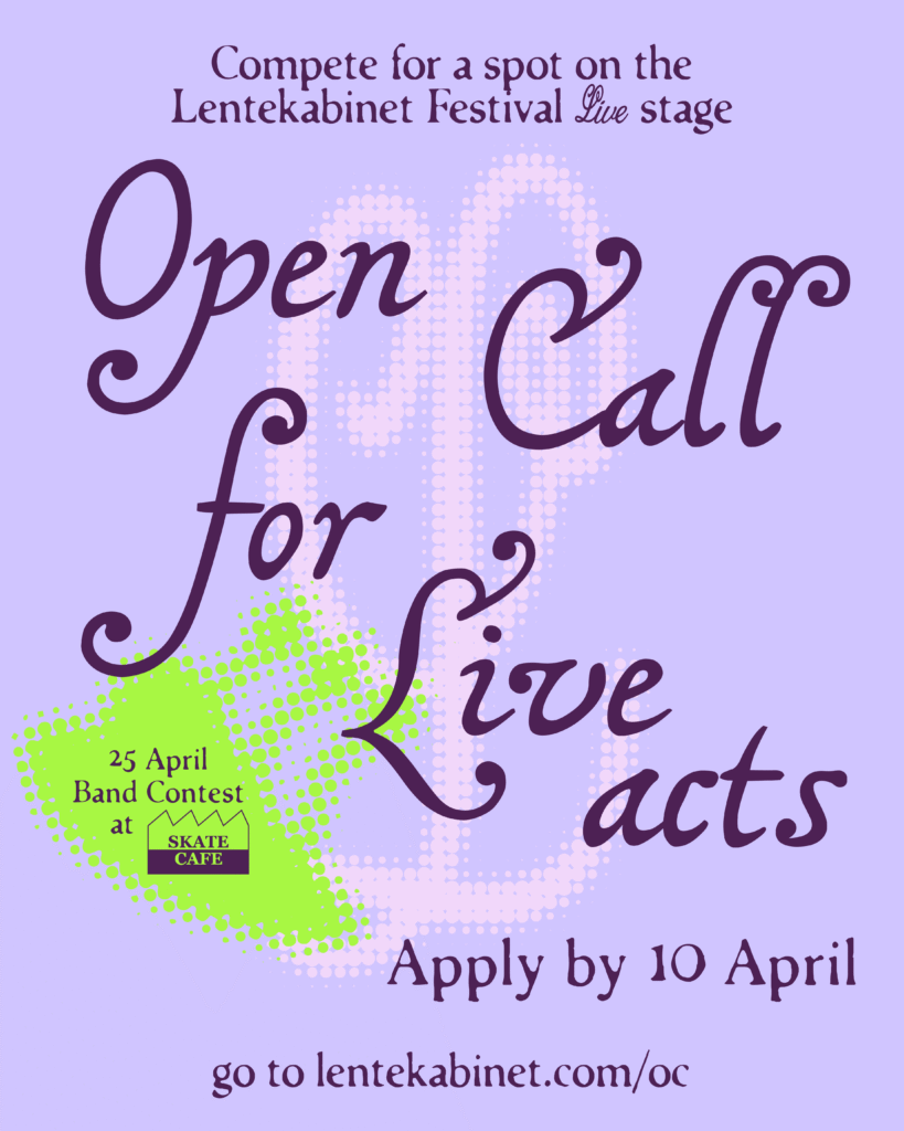 If you want to play at Lentekabinet, you can slide your submission before April 10th to join the annual band contest and get a chance to be the final name added to this year’s the line-up. The contest will happen at Skatecafe on April 25, and entry is free!